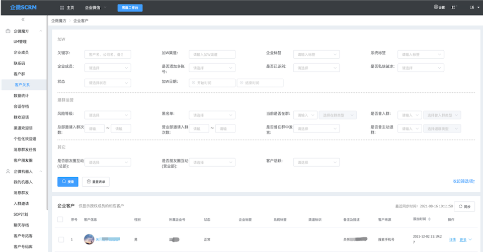 这样的功能整合,除了可以提高员工加微效率外,还可以规避员工触及客户隐私(手机号)所有可能带来的风险。